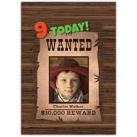 This fun and personalised “Wanted” birthday greeting card is perfect for children aged 1 to 9 who love adventure and the cowboy spirit. Featuring a rustic wood background and a classic outlaw poster design, this card can be customised with the birthday child's name and photo on the cover, making it a truly special keepsake.