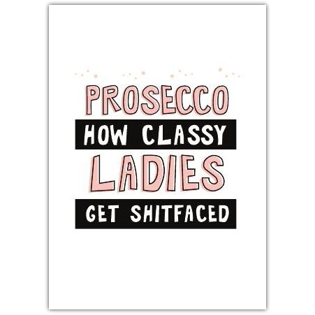 Prosecco How Classy Ladies Get Shitfaced Humorous Birthday or Celebration Card