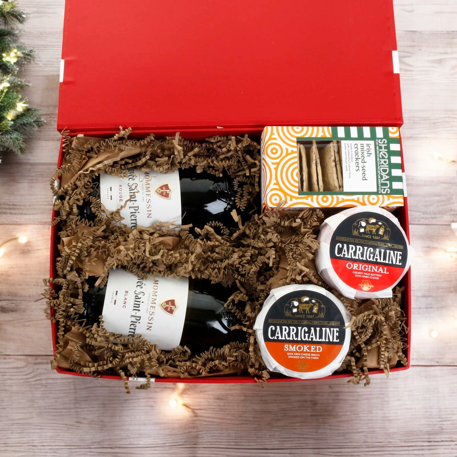 The hamper is presented in our new luxury red gift box with satin bow. Stylish and reusable, the gift box is packed inside a separate shipping box for secure transport.