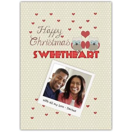 Happy Christmas Sweetheart 2 Birds Card is the perfect festive greeting to share your love this holiday season. Featuring two adorable owls surrounded by charming red lovehearts, this card beautifully captures the warmth and romance of Christmas.