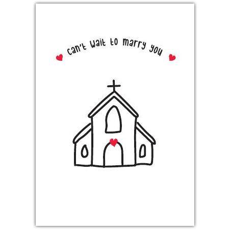 Romantic Wedding Couple Card with Church Illustration and Can't Wait to Marry You Message