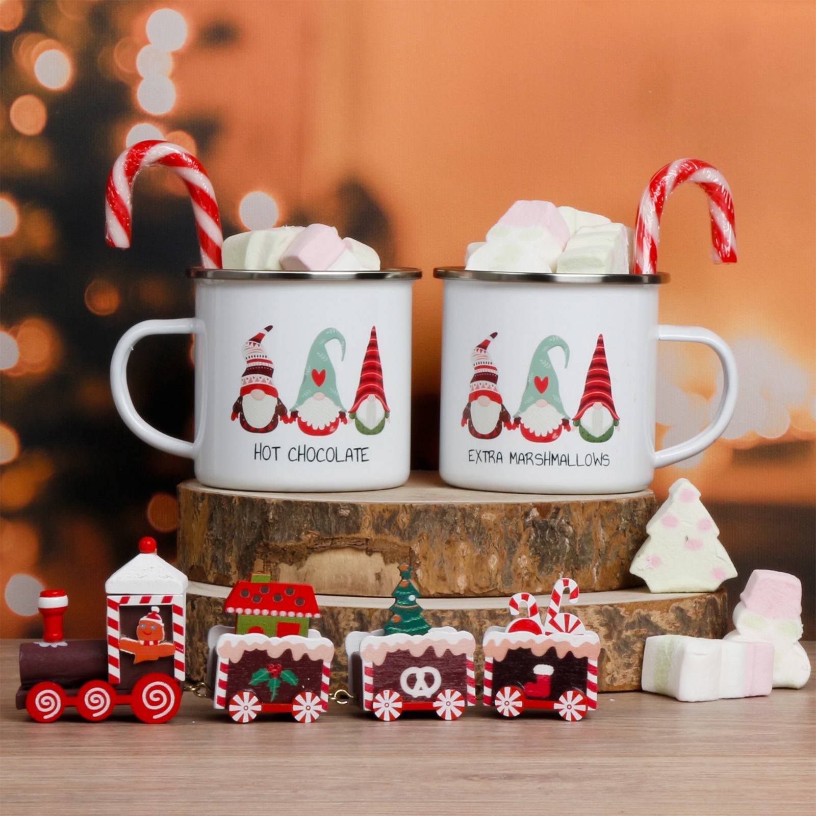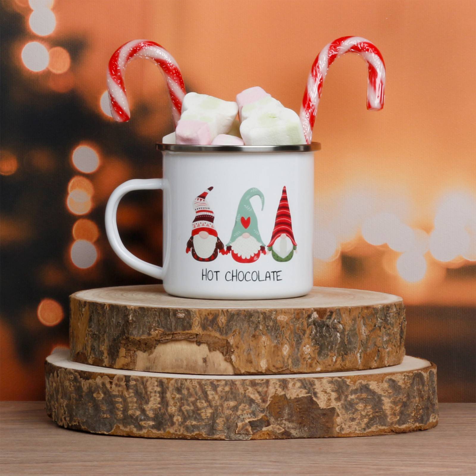 • Festive keepsake mug: The enamel sublimation mug with a silver rim is perfect for warming up with hot chocolate topped with marshmallows after a day of Christmas fun.