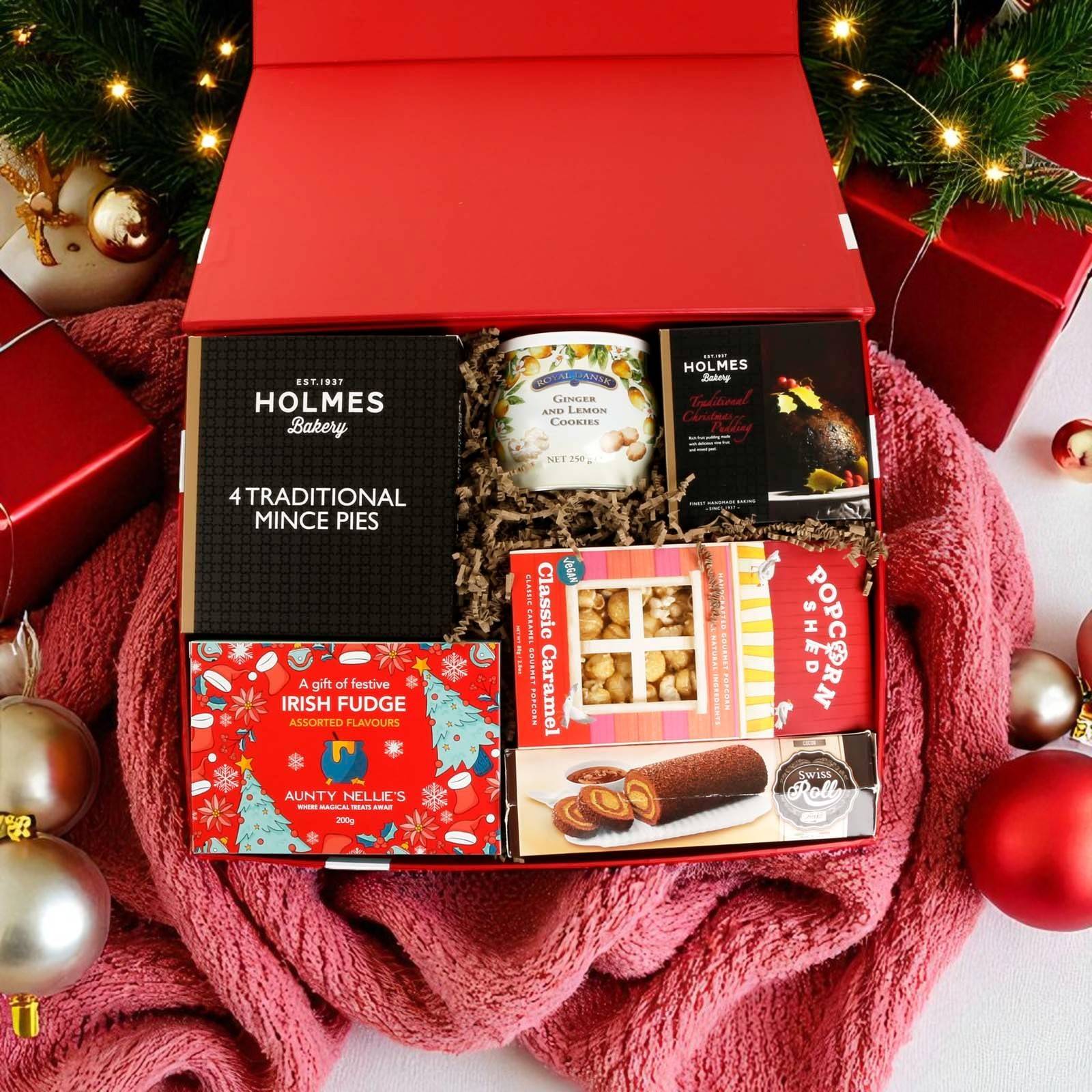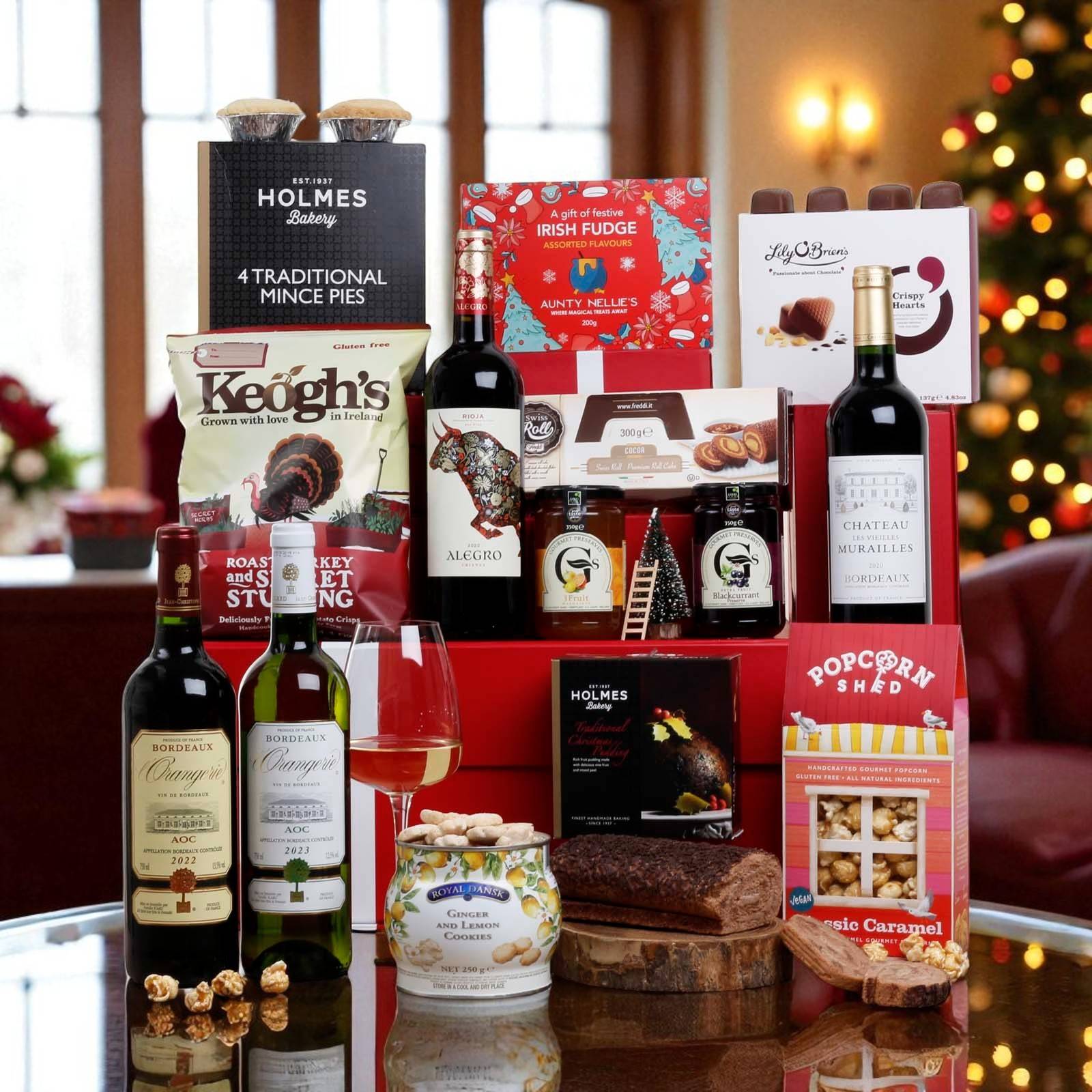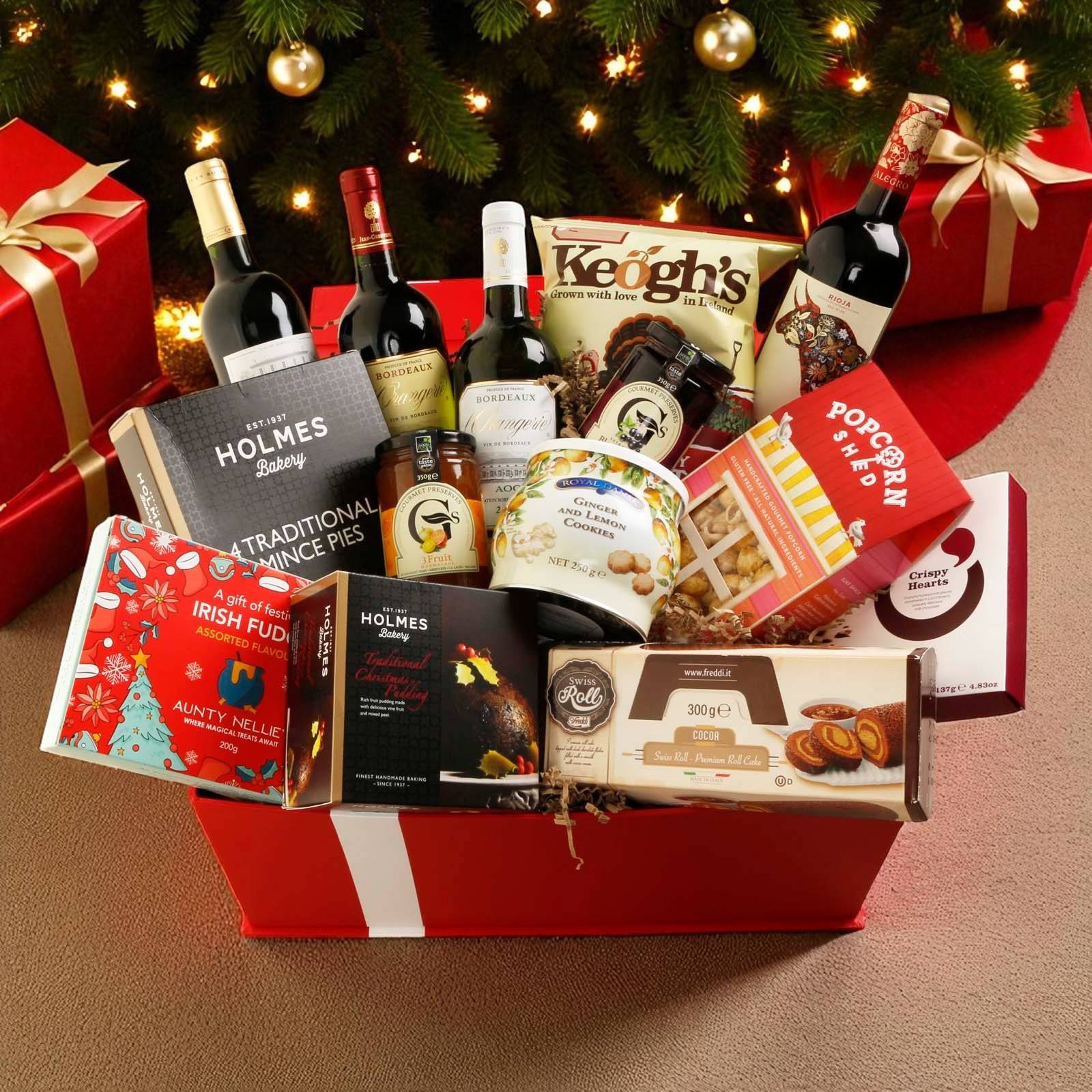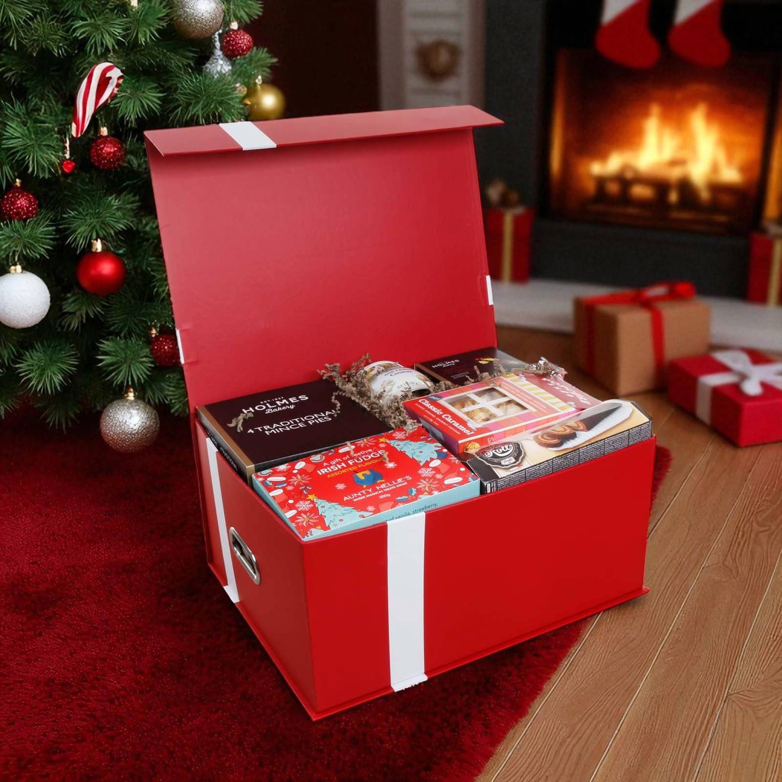 The hamper is presented in our new luxury red gift box with satin bow. Stylish and reusable, the gift box is packed inside a separate shipping box for secure transport.