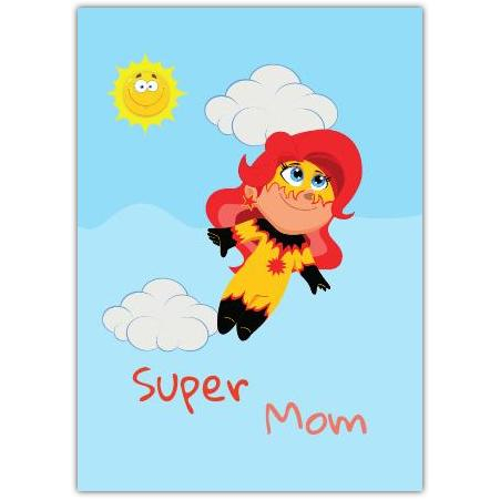 Celebrate your hero this Mother's Day with our charming Super Mom Greeting Card. Featuring a delightful cartoon illustration of a bright and cheerful superhero mum soaring through a sunny sky, this card captures the spirit of a mother who truly does it all.