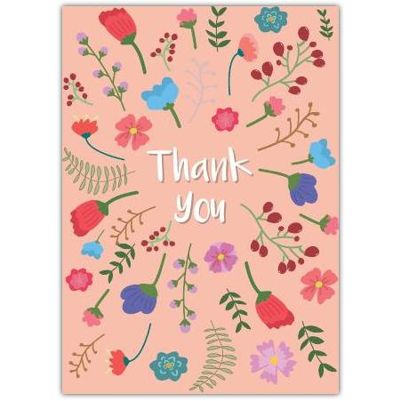 Express your gratitude beautifully with this charming “Thank You” greeting card. Adorned with a delightful mix of colourful, hand-drawn flowers scattered across a soft peach background, this card is the perfect way to say thanks with style and warmth.