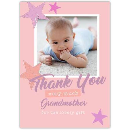 Show your gratitude with this charming 'Thank You Very Much Grandmother' card, beautifully designed with soft pink and purple stars against a gentle pastel background. Perfect for expressing your heartfelt thanks to a beloved grandmother, this card is both sweet and sincere.