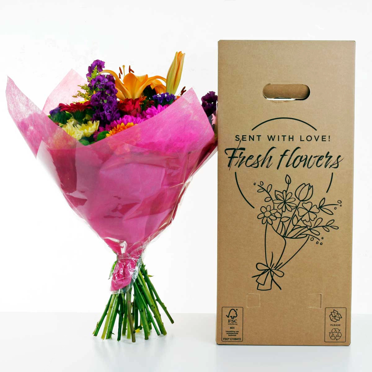 • Our fresh flower bouquets are packed and shipped direct from our Dublin warehouse together with any other gifts and cards ordered.