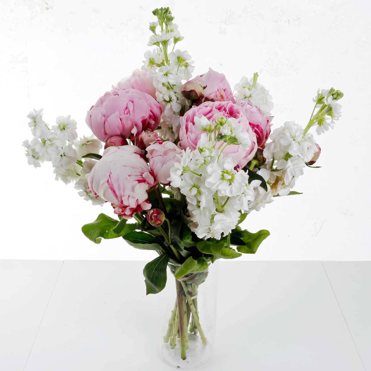 This chic and pretty arrangement of Pink Peonies and White and Cream flowers is the perfect bouquet to show your affection and appreciation to someone you love.