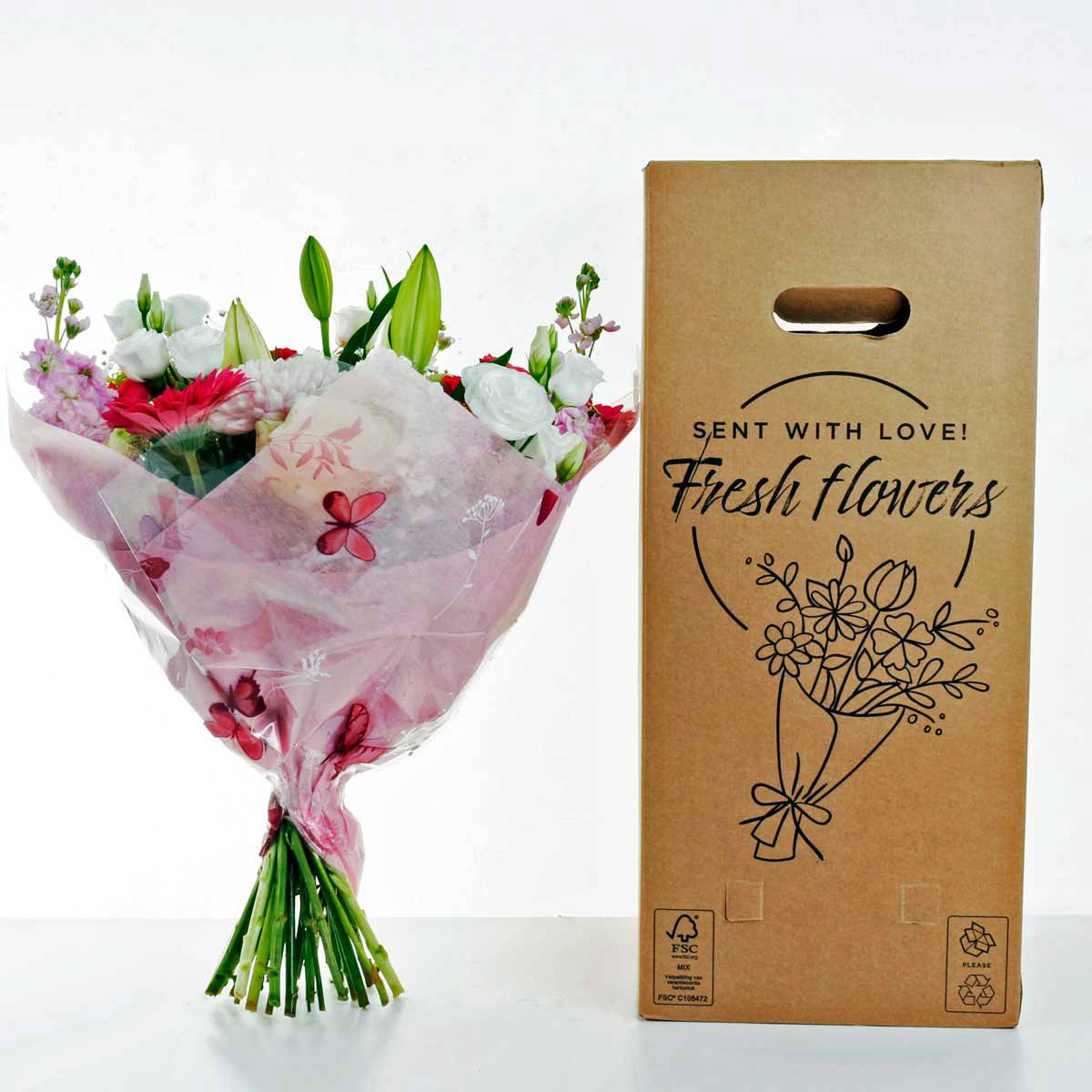 - Our fresh flower bouquets are packed and shipped direct from our Dublin warehouse together with any other gifts and cards ordered.
