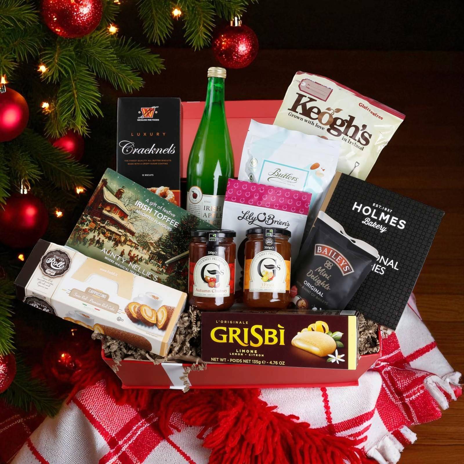 The hamper is presented in our new luxury red gift box with satin bow. Stylish and reusable, the gift box is packed inside a separate shipping box for secure transport.
