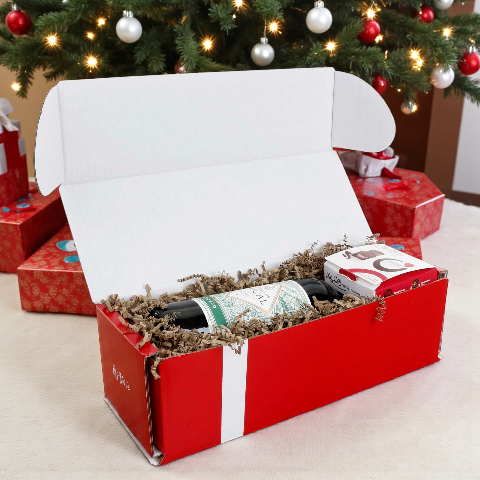 The hamper is presented in our new luxury red gift box with satin bow. Stylish and reusable, the gift box is packed inside a separate shipping box for secure transport.