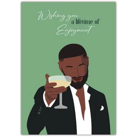 This sophisticated greeting card, featuring a dapper gentleman raising a toast, perfectly captures the essence of celebration and joy. The elegant message, "Wishing you a lifetime of Enjoyment," makes it an ideal choice to mark a variety of occasions with warmth and class.